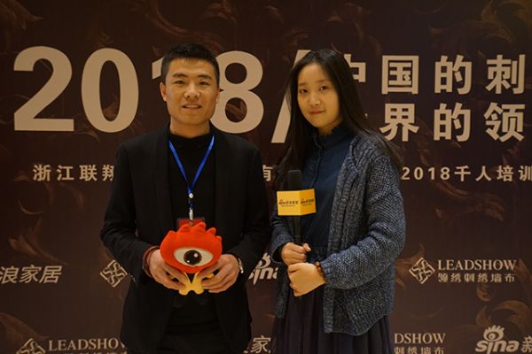 【新浪记者】:各位网友大家好,我是新浪家居墙布频道的记者付杨,现在我是在领绣2018千人培训大会的现场,非常荣幸能够邀请到领绣河北张家口专卖店负责人王朋先生接受我们的采访,王总,您来跟广大网友打个招呼吧。