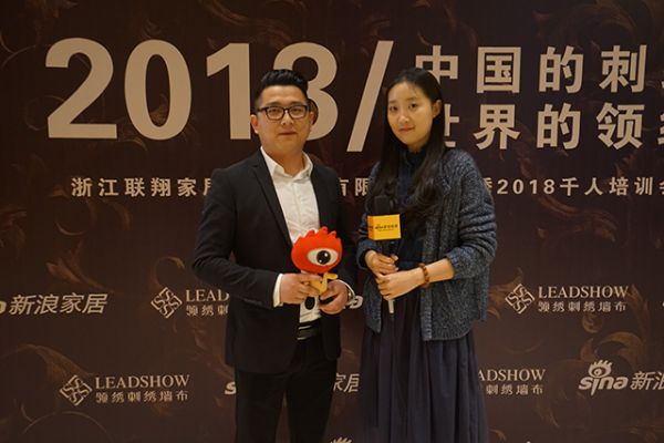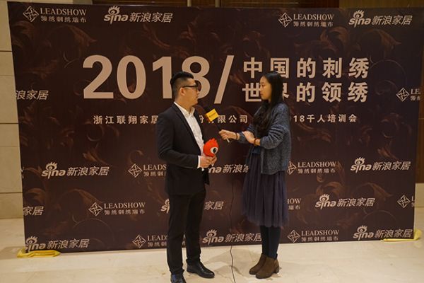 【新浪记者】:各位网友,大家好,我是新浪家居墙布频道的记者付杨,现在我是在领绣2018千人培训大会现场,很荣幸能邀请到领绣大区经理金佳峰先生接受我们的采访,金总,您跟大家打个招呼吧。