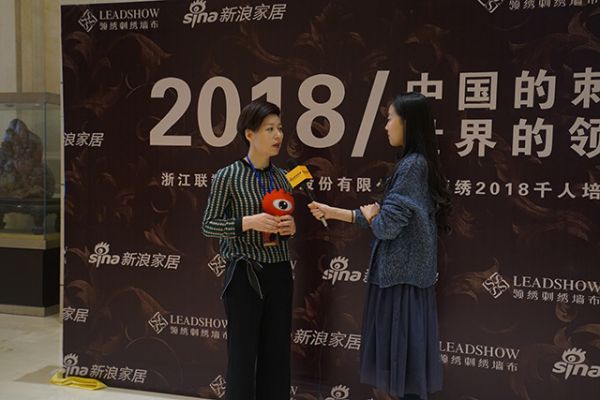 【新浪记者】:各位网友大家好,我是新浪家居墙布频道记者付杨,现在我是在领绣2018千人培训大会的现场,非常荣幸能邀请到领绣河南郑州专卖店负责人吴爽女士来接受我们的采访,吴总,您来跟广大网友打个招呼吧。