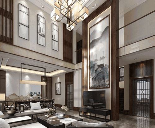 客厅艺术大吊灯与背景墙的装饰画互相呼应,现代与古典碰撞,别致的异型吊灯,实木家具温暖又富有深度。偶以镂空元素点缀,衔接自然,使得空间调性具有某种连贯感与和谐美,气派挑高客厅将生活的多元趣味和仪式美感铺排陈列。无一不在低调中彰显主人的独特品味。