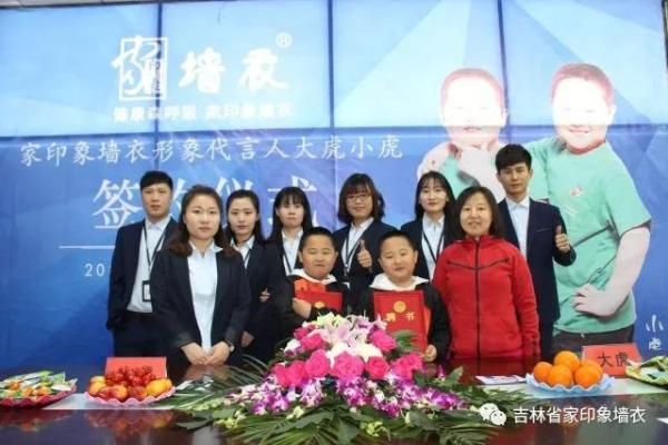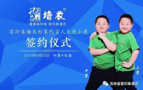 2018年4月22日,中国长春。家印象品牌墙衣继与央视、百度、腾讯等媒体达成合作,并喜迁新址之后,助力升级再添新动作:签约双胞胎形象代言人人大虎小虎!家印象总经理王平,大虎小虎的母亲李桐女士及大虎小虎共同出席了本次签约仪式。这标志着家印象品牌墙衣品牌更立体化的展示和发展,完美诠释了实力铸就品牌的含义。