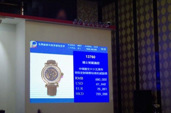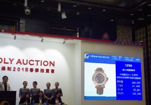 立体微雕珐琅手表首次出现在保利春拍,即引起多方关注;在十余轮激烈竞价之后,“龙凤呈祥立体微雕珐琅腕表由一不具名的电话委托人,以人民币58万的价格拍得。