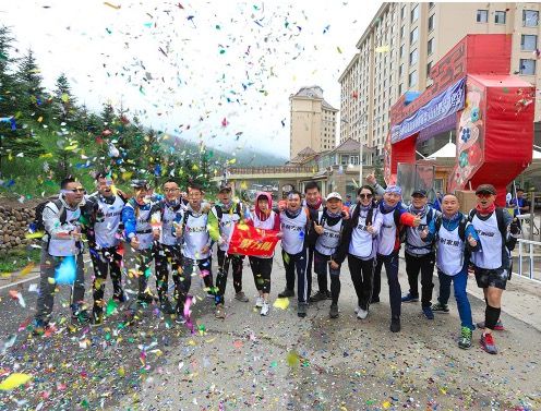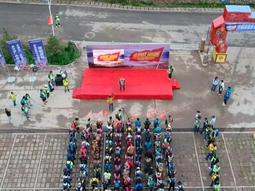 在纷飞的彩带和手持礼炮声中,十个团队依次出发,向着目的地奋然前进。