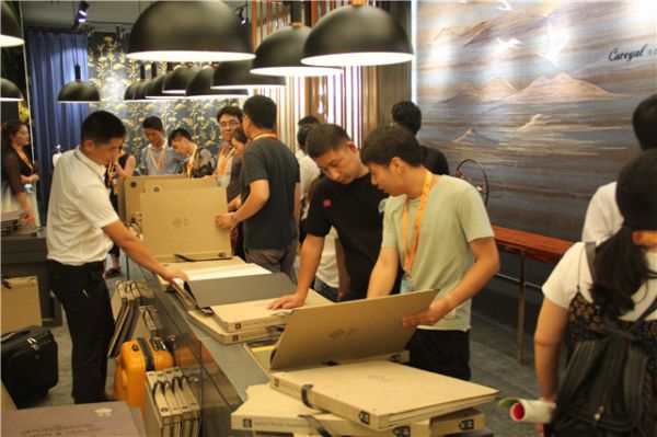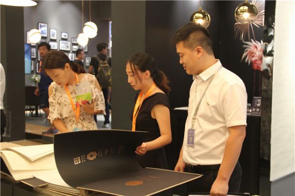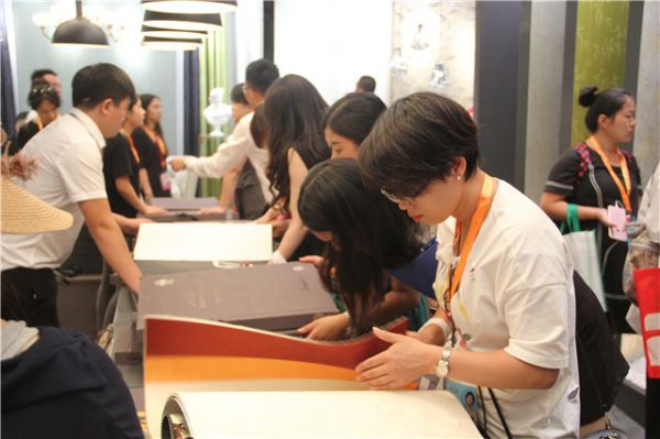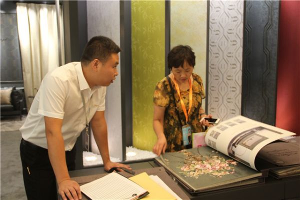 展会开幕当天,场馆内人来人往。很多参观者趁着晨起凉爽,早早就来到新国际博览中心等候开幕。从他们随身携带的资料等物品,明显可见事前对展会与家装的关注与了解。可罗雅的展馆内也几乎是在瞬间就被参观者充实,他们细心观赏墙布之美,对样板间软装的设计搭配提出了自己的看法与见解。很多有加盟意向的参观者直接拉住可罗雅的工作人员,对相关事宜进行了询问与接洽。
