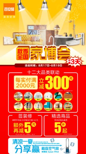 百安居作为家装家居行业领军企业,不断推动行业变革。为给消费者提供更加卓越的家装购物体验,百安居创新性推出新零售家居智慧门店,引领家居新零售,打造所见即所得的真实场景化卖场,为消费者带来了颠覆式的消费体验升级。目前,百安居已于全国9座城市开设了近20家B&T home新零售家居智慧门店,覆盖华北、华东、华南、西南多个地区的重点城市,所到之地,消费者联翩而至,交口称赞。为回馈广大消费者多年支持与信赖,百安居在2018年8月17日至8月19日于全国门店倾力推出仅限三天的秋季家博会活动,多重优惠齐发,尽享购物福利。