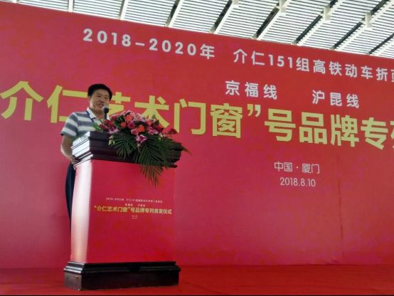 2018年8月10日上午,“介仁艺术门窗”号京福线和泸昆线首发仪式在厦门北站启动,广东介仁玻璃有限公司董事长欧介仁,南昌铁路文化广告传媒有限公司书记文全安,上海大学美术学院教授博士生导师庄小蔚,中国玻璃网CEO高晗,广东门业协会副秘书长绕德亮,南昌铁路文化广告传媒有限公司副总经理胡兵武,中国建筑业协会材料分会副会长兼咨询中心主任魏明显,融传广告(上海)有限公司总经理潘仁稳,以及行业内知名人士共同见证了这一重要时刻,它标志着广东介仁玻璃有限公司品牌战略的再次升级。