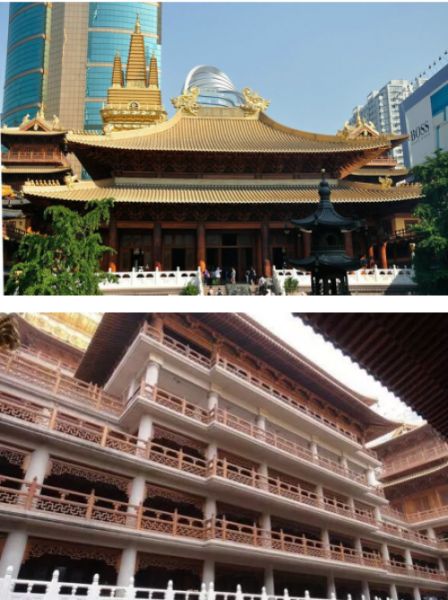 柚木在上海,还有一处更为知名的案例,即静安寺。静安寺相传始建于三国年间,至今已近780年。上世纪90年代末,静安寺进行了大规模的重建工作,其中,仅大雄宝殿使用柚木就达3000多立方米,为全柚木重檐式铜顶建筑,高26.71米,是除宝塔外整个寺院最高的建筑,上层大殿由46根整根柚木立柱构建。这些柚木立柱高十几米,直径超过1.2米。整个静安寺内,柚木木门、柚木窗格、柚木地板、柚木护墙板等随处可见。