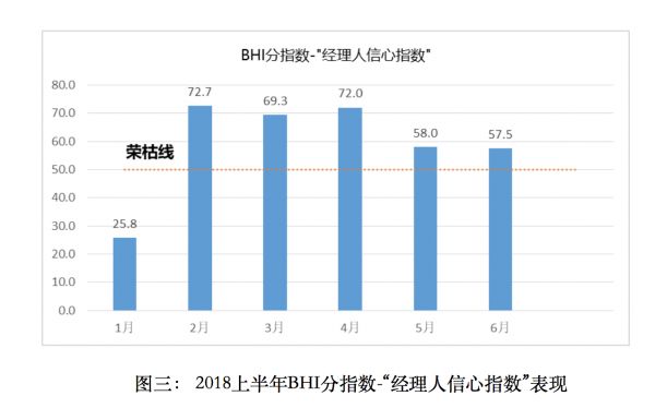 分析BHI分指数“经理人信心指数”(见图三),“经理人信心指数”是预期指数,自2月起均位于景气区间,绝对值高于50(高于50看好后市、低于50看弱后市),表明从业者对整体市场趋好的信心进一步增强。