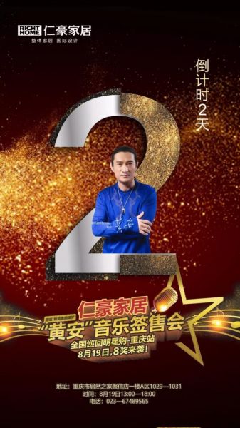 倒计时开始啦!距仁豪家居“黄安”音乐签售会 ,全国巡回明星购—重庆站,还有2天