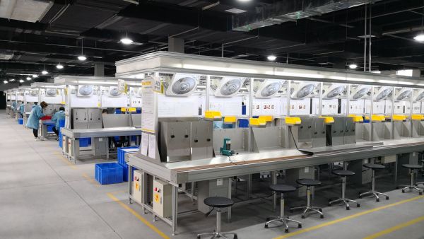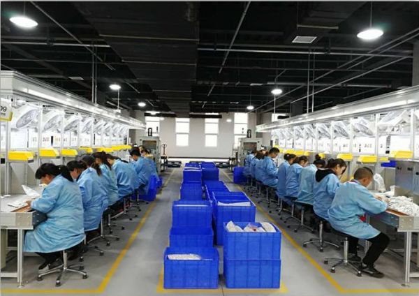 车间生产全部采用新一代直流式生产线,总数18条线,日常量在20万只左右,大大提高了生产效率。产品从首道工序投入至包装9道工序全部在直流式生产线上一气呵成,减少了工序之间来回用周转箱导致的外观和功能不良。从而减少人力节约生产成本,提高了效率,更保证了产品质量。