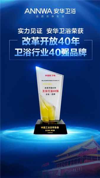 15年来,安华卫浴一直致力为消费者提供健康环保、质量稳定、性能可靠、安全舒适的卫浴产品,为推动人类卫浴文明的进步、改善人们的卫浴生活品质而全力以赴。此次一举揽获“改革开放40年卫浴行业40强品牌”和“厨卫行业产品金奖”,是业界对安华卫浴品牌综合实力和产品性能的充分肯定,安华卫浴必将继续以创优的理念、先进的技术、严格的管理、优化的模式,不断提升品牌价值,满足消费需求,为行业发展和社会进步做出更大贡献。