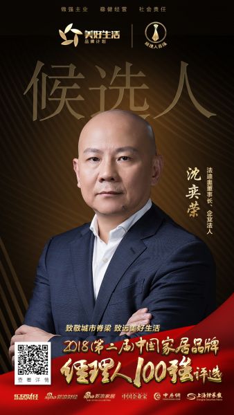 快讯:法迪奥沈奕荣提名参选2018中国家居品牌经理人100强