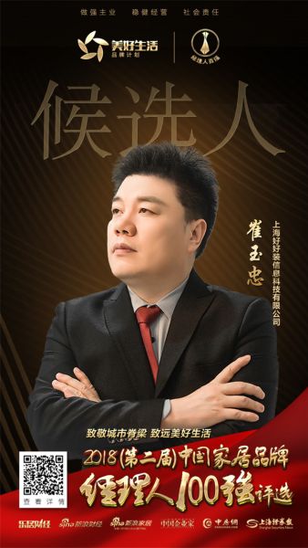 恭喜上海好好装总经理崔玉忠提名2018中国家居品牌经理人100强评选!