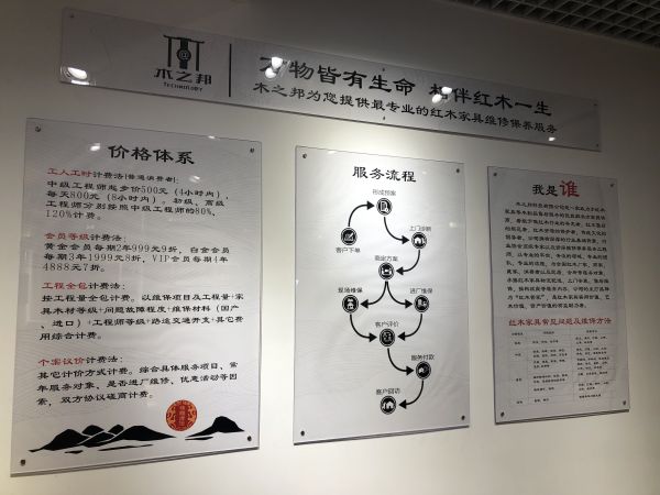木之邦科技有限公司总经理钟国建在采访中告诉记者,之所以选择做红木售后服务有两点初衷。第一,红木属于稀有自然资源,在被砍伐做成家具之后便有了艺术价值,木之邦存在的意义即是为了延续红木的自然生命和艺术生命;第二,红木养护是厂家、商家、消费者共同的痛点,木之邦旨在通过打造商业模式,为整个红木家具行业提供优质、完善的补充服务。