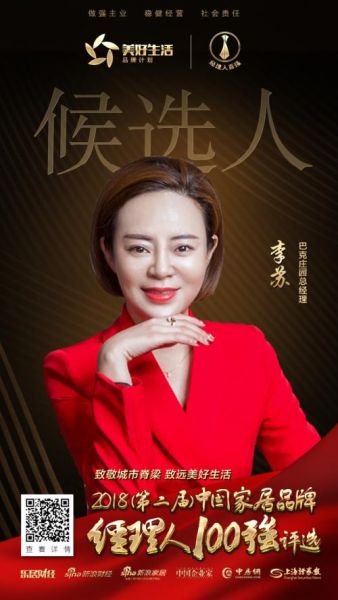 快讯:巴克庄园李苏提名参选2018中国家居品牌经理人百强