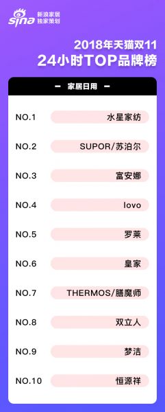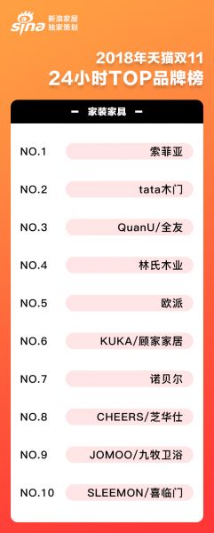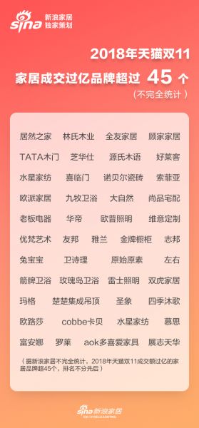 2018年双十一最新榜单 超40个成交额过亿家居品牌都有谁?