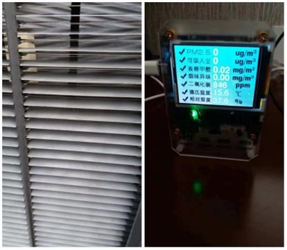 通过大约1周的施工,2台远大新风机装好了。我迫不及待的拿出了提前购买的测试仪。通过几个小时的连续使用,在室外pm2.5和pm10分别高达121、151的情况下,室内能够达到0数值。真的让有心理准备我还是大吃了一惊。