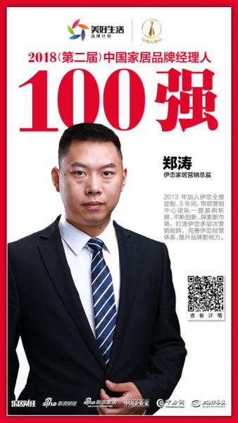 快讯丨伊恋家居郑涛荣获2018中国家居品牌经理人100强