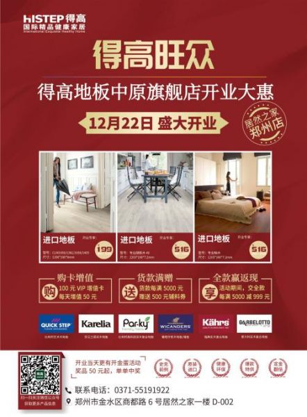 12月22日,得高中原旗舰店盛大开业,让我们相约得高,享健康精品,一起开启品质新家吧!