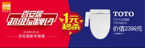 除了【1元秒杀】活动外,千万不能错过的还有百安居全国门店【超级品牌日】的TOTO专场活动。2018年12月29日至2019年1月7日,在全国百安居门店(除北京),购买TOTO指定商品满1000元送120元券;北京百安居门店,购买TOTO指定商品满1000元立减120元。(活动详询全国百安居门店)