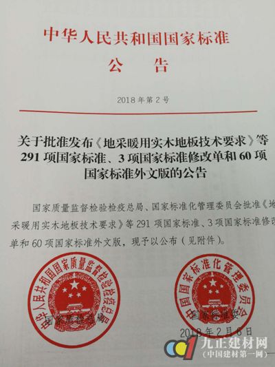 【2018-02-07】《地采暖用实木地板技术要求》即地暖实木地板国家标准正式颁布。