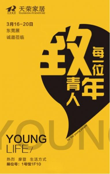 天荣家居TEAM&RUN为了每一位年轻人,开创热烈且摩登的生活方式,设计是态度的表达,原创、创新,是自我的认知,摩登而又热情是生活方式,世界自由,生活自由,内心自由,追逐我们自己想要的一切,作品便是思想的传递。一笔一划的勾勒,是天荣家居对每一位年轻人表达的话语。