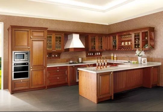 领尚整体厨房实木系列采用生长于北美红橡木、樱桃木、加拿大枫木等为原材料,18mm多层实木基材,承重性、稳固性更高,常年使用不变形,有效提高柜体使用寿命。