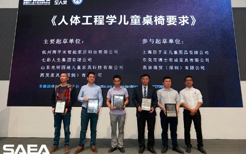 为表彰在本标准编制工作中作出突出贡献的单位和集体,在会上,中国标准化研究院基础标准研究所人类工效学研究中心主任、国家市场监管总局人因与工效学重点实验室副主任赵朝义代表为标准负责起草单位和参加起草的7家单位分别授牌。其中本标准负责起草单位为:杭州两平米智能家居科技有限公司、七彩人生集团有限公司、山东光明园迪儿童家具科技有限公司,西昊家具(深圳)有限公司。参加起草单位为:上海孩子王儿童用品有限公司、东莞市博士有成家具有限公司、高林商贸(深圳)有限公司。据悉,参与《人体工程学电脑椅要求》标准制定的参编单位,将成为人体工程学产品检测认证、人体工程学商品打标展示等服务的首批获益者。