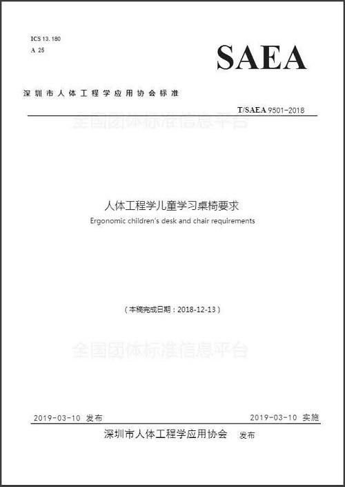 3月28日,由深圳市人体工程应用协会联合全国多家高校、科研机构、知名企业共同起草完成的《人体工程学儿童学习桌椅要求》正式发布实施,这是国内首次发布的人体工程学儿童学习桌椅相关团体标准。