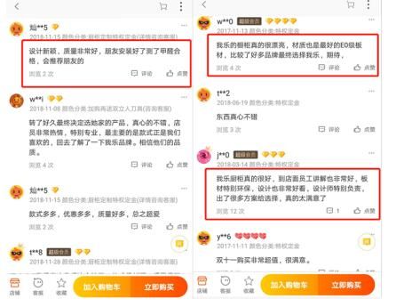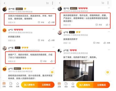最后一点要说的是,当我们发现一家很好吃的外卖,我们会迫不及待的和朋友分享,告诉朋友下次一定要买这家。这一现象,在我乐橱柜也很常见,很多用户表示我乐橱柜性价比很高,已经安利给好多朋友了。