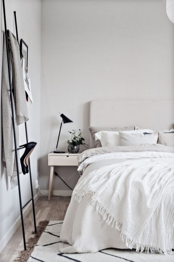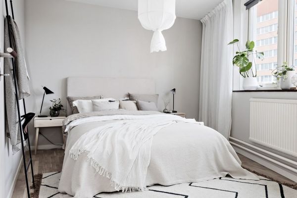 主卧色调风格依然是素净北欧风,没有太多的家居摆设,窗台上有绿植装点,零星的绿色,给素净的居室内增添不少生机。