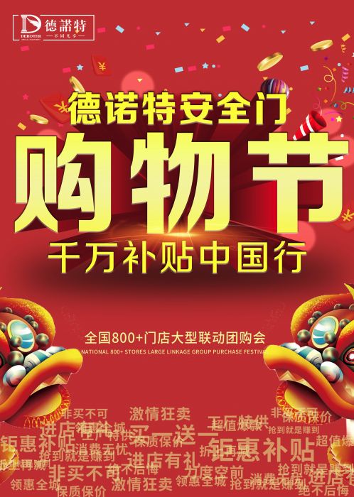 家装正当时,安全德诺特。趁着购物节的热潮,赶紧到全国各大门店抢购你心仪的安全门吧!