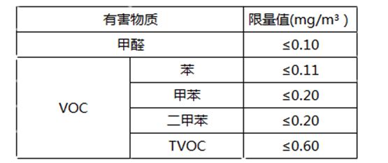 2、家具产品有害物质限量值、甲醛、甲苯、二甲苯、TVOC