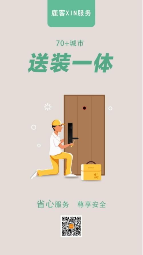 基于对消费者痛点的洞悉,鹿客率先推行“送装一体”服务,用户与在线客服确认了户门的尺寸参数后,即可预约安装师傅直接带货上门并安装,免去快递麻烦,该项服务目前已覆盖70+城市。