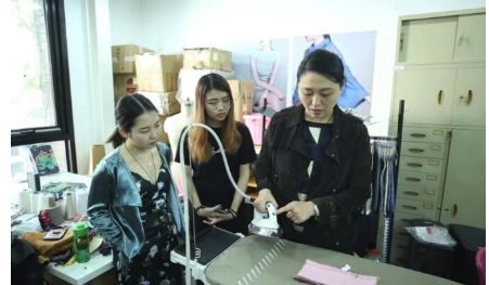 ▲ 针织电脑横机实验室/老师指导使用Laurastar熨烫织物 ▲