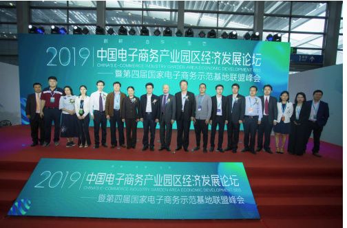 图:出席2019中国电子商务产业园区经济发展论坛暨第四届国家电子商务示范基地联盟峰会主要领导人员合影