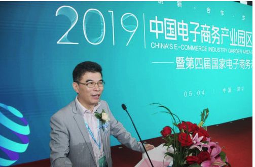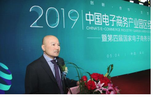 图:广东高科技产业园区联盟执行主席、国家电子商务示范基地联盟主席、多丽电子商务产业园管理有限公司董事长张革私在“2019中国电子商务产业园区经济发展论坛暨第四届国家电子商务示范基地联盟峰会”上发言