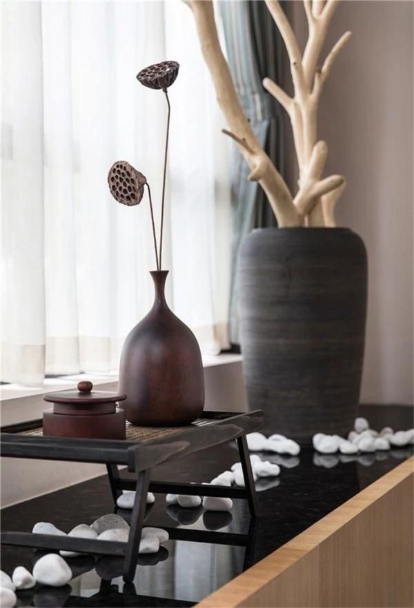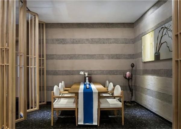 在这一方禅意天地里,久违的温润感浸润身体,忙碌的心灵得到复苏,心绪肆意舒展、流动、延伸,感受平静恬淡的慢时光。清浅的木色与牙白交织出和雅的曲调,幽幽黛蓝宕起空间的雅趣,数只白瓷茶具缀之,随意修葺的清水泥墙面,一派东方美学的简约禅意悄然而生。