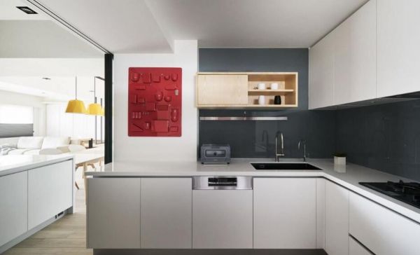 以律师为业的屋主,亟待需求一处身心放松的居家之所。在格局安排上,将隔间墙后推,让客厅变大,亦加宽厨房的开口,利用玻璃拉门,打开公共领域的舒适尺度。再铺叙白色基调,赋予纯净的信任感,且浸润木质的温度,点缀灰、黑,丰富空间的层次。