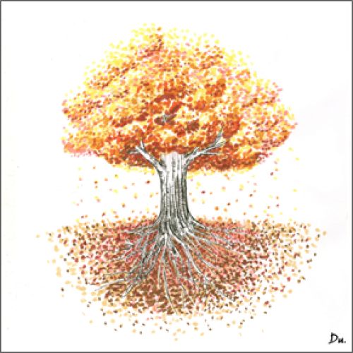 我会进行一些小插画的绘制,纯属个人爱好。 也会发表在一些媒体上,我说的大多也是时间与空间的故事。比如我画的“自然居于弃宅”(Nature reclaims an abandoned house, 2017)描绘的是一颗大树在一座废弃的老宅中茁壮成长,枝丫伸出门窗、烟囱。我们人类遗弃了我们的房子,自然没有。这可能可是多年从事历史保护工作给我带来的影响。一个房子,有价值的并不是仅在它本身,还有的就是它身上的时间记忆。我们应该对历史遗存的保护有着更高的关注度。当然也有一些比较积极的作品了,“落红不是无情物, 化作春泥更护花” (The fallen leaves, in return, will transform into soil to nourish the flower in spring, 2017)诉说的又是一个积极的关于时间的故事。秋日里,落花、落叶满地,散入泥土,深入根部,如同倒影一般的在地底镜像成了另一个树,预示着来年春天的美好。说到这里,我还很期待即将开始的我的个人设计展,希望我多年的艺术设计成果可以得到一个全面的展示。