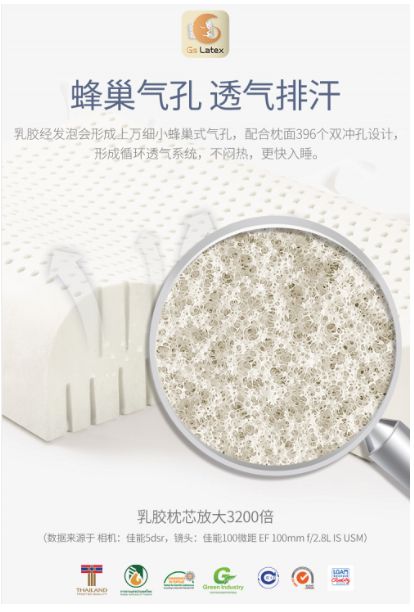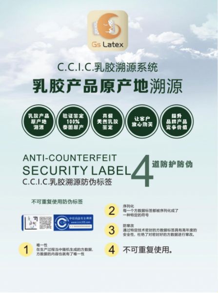 GS LATEX乳胶寝具,选用泰国罗勇府的优质三叶乳胶原液,采用成熟的邓禄普工艺进行标准化生产,不添加任何对人体有害的化学发泡剂,所有的成分均通过了中国及泰国著名乳胶检测实验室的严格检测。因此,GS LATEX所生产的乳胶寝具均为平均纯度高达93%的高品质产品。更重要的是,GS LATEX品牌所有产品均拥有中国——东盟原产地认证,是市场上唯一拥有双重溯源认证的乳胶寝具。同时,每一个泰国GS LATEX的产品均配有一张权威的英文质保卡,保证消费者在中泰两国任何一家门店或经销商处均可以享受品牌为期四年的质量保证。
