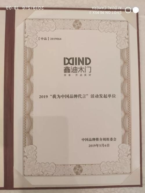未来,鑫迪木门也会继续维护品牌形象,倡导“品质立牌、科技创牌、匠心护牌”的精神,让品牌意识扎根企业每一个员工心中,贯穿每一道生产工序,渗透每一个价值创造链条,打造具有国际竞争力和知名度的中国品牌,为中国品牌代言。