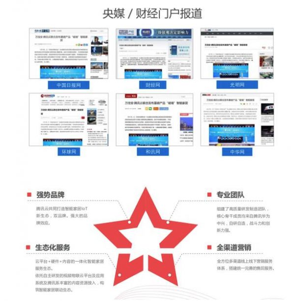 4.产品扶持:万佳安·腾讯云有完整的产品链规划,定时定点推出智能家居系列新品,丰富合作伙伴的营销产品库。