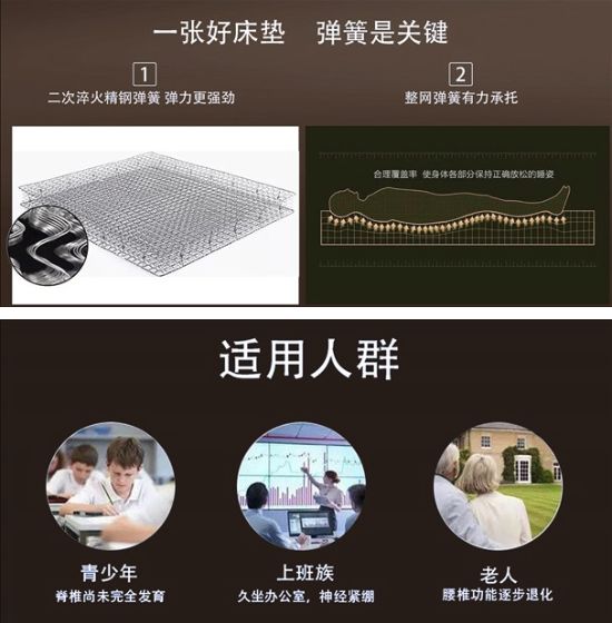 倍仕BTC-X2床垫一改传统一次淬火的弹簧内芯,采用第一次高压淬火,整体成形后再二次高温淬火,经过二次淬火的弹簧系统,弹力更强劲,支撑更坚挺。有效支撑对人体背部,同时,自感应人体重量,真正达到硬而不僵。