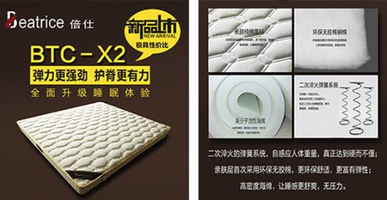 倍仕BTC-X2床垫这款作为2019年的爆款,极具性价比,各大商场均有销售。