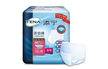 添宁干爽易穿活动裤为内裤式设计,如普通内裤般贴身,相比普通搭扣式纸尿裤,穿脱更容易,母亲独自穿脱也不会觉得尴尬。三重防漏系统配合超强吸收体,保障尿液能被快速吸收不回渗,保持干爽,减少皮肤问题的发生,活动起来也紧密贴合身体不侧漏。