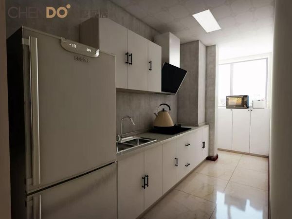 假如你家中的厨房不大,尽可能的多做一些收纳柜,用来遮挡一些杂乱的瓶瓶盒盒罐罐,台面整洁,在夏天既能很好的保持厨房卫生空气洁净,而且在烹饪的时候更能够的心应手,整个做饭的心情将不同。