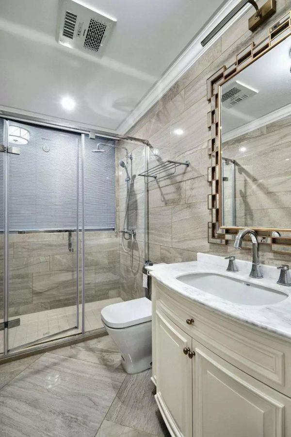 卫浴室如果需要改造的话大家可以抛弃浴缸式洗澡房,夏天天热的浴缸就显得有点鸡肋还占空间,推荐大家使用全玻璃淋浴房,排水底道下沉5公分,水流比瀑布还快。
