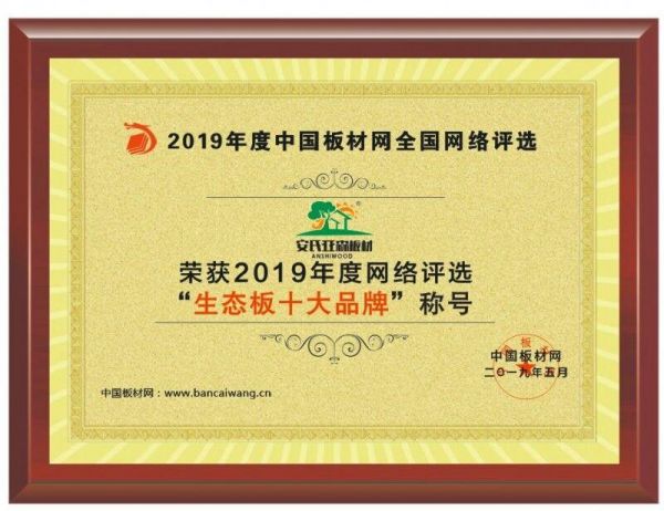 本次活动凭借着高品质的产品保证和深入终端市场的品牌影响力,安氏亚森板材荣获“2019年度生态板十大品牌”荣誉称号!