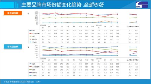 (中怡康4月电热水器主要品牌市场份额变化趋势)
